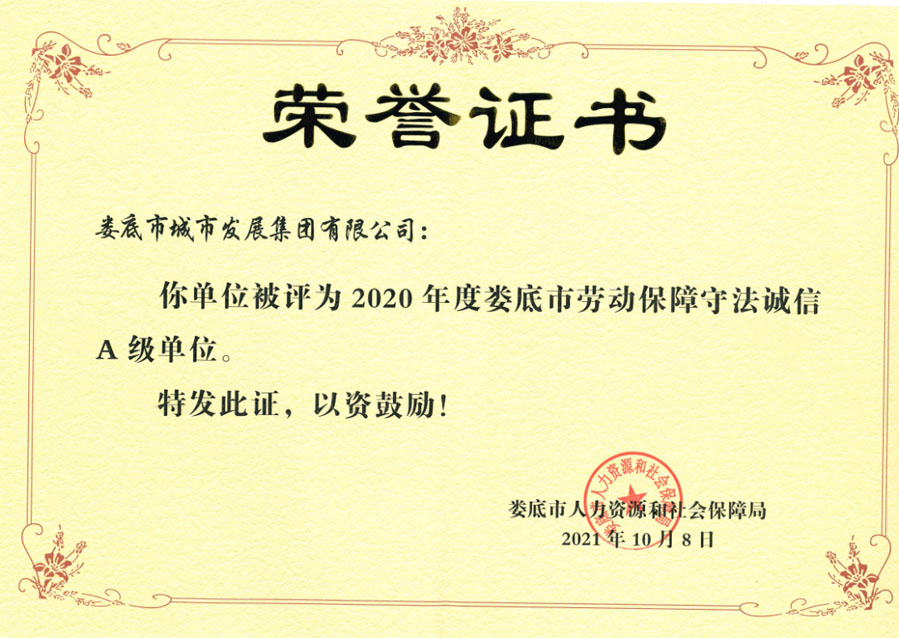 近日,婁底市人力資源和社會(huì)保障局公布了2020年度婁底市市本級(jí)用人單位勞動(dòng)保障守法誠(chéng)信等級(jí)評(píng)價(jià)結(jié)果,婁底市城市發(fā)展集團(tuán)有限公司被評(píng)為“勞動(dòng)保障守法誠(chéng)信A級(jí)單位”。此次,婁底市千余家單位通過(guò)用人單位自主申報(bào)、市勞動(dòng)監(jiān)察局初審、征求相關(guān)部門意見(jiàn)、市人社局審核、網(wǎng)上公示后共優(yōu)選出45家A級(jí)單位。這也是市城發(fā)集團(tuán)連續(xù)第四年獲評(píng)此榮譽(yù)。