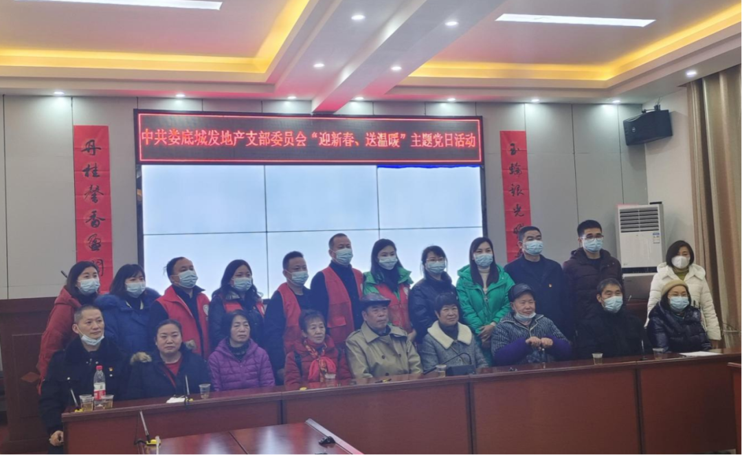 1月18日,城發(fā)地產支部書記、總經理劉偉帶領支部全體黨員、預備黨員一行前往蜜蜂社區(qū)開展“迎新春,送溫暖”主題黨日活動,慰問社區(qū)困難黨員、群眾和優(yōu)撫對象,為他們送去新春的問候和祝福。