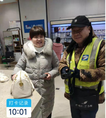 (智慧停車(chē)收費(fèi)員胡小文與失主合影)